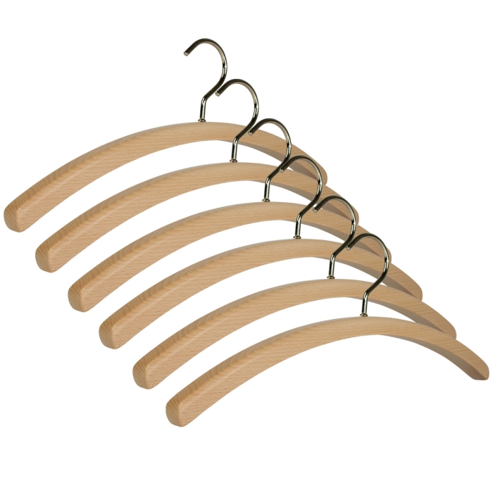 6er Garderobenbügel Set 501 Premium natur n ✓ 6er Set ✓ aus Buchenholz gefertigt ✓ 6 mm Haken, silber ✓ Höhe des Haken: 9,3cm ✓ die Hakenöffnung beträgt 42 mm ✓ die Auflagenbreite beträgt 30 mm ✓ Garderobenbügel in der Farbe buche natur lackiert ✓ die Gesamthöhe des Bügel beträgt 18,5 cm ✓ der Garderobenbügel hat eine Breite von 45 cm ✓ rechteckiges Profil mit abgerundeten Kanten ✓ geeignet für Mäntel, Jacken, Oberbekleidung