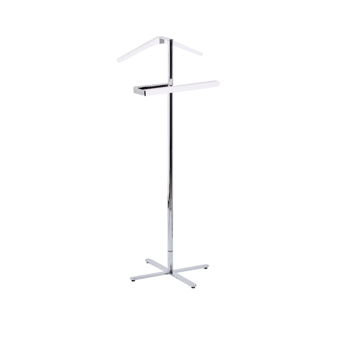 Anzugständer pieperconcept TURNO Eiche weiß ✓ 360° drehbar ✓ Stahl hochwertig glänzend verchromt ✓ Bügel und Aufhängung aus massiver Eiche in weiß ✓ Maße: Höhe 110 cm, Breite 45 cm
