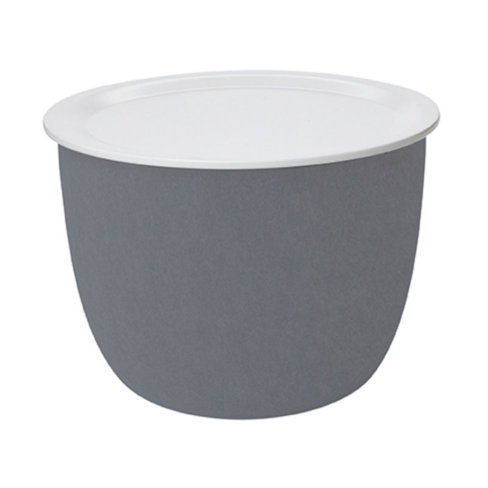 Der Korpus in Filzoptik, gefertigt aus robustem Kunststoff, bietet viel Stauraum im Inneren. Der abnehmbare Tablettdeckel aus weißem Formholz dient als praktische Ablage und macht den Tisch besonders flexibel. Die zeitlose Kombination aus Grau und Weiß fügt sich harmonisch in verschiedene Einrichtungsstile ein.