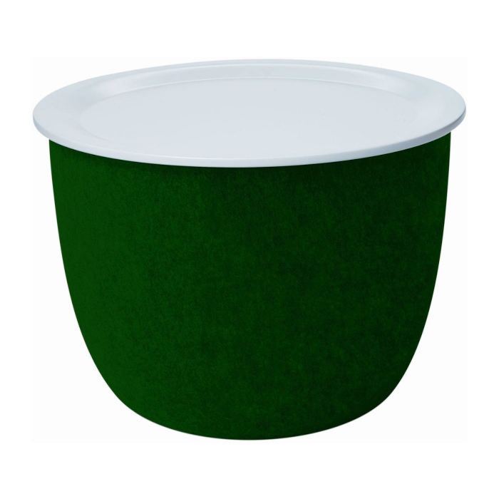 Der Korpus in Filzoptik besteht aus robustem Kunststoff und bietet im Inneren viel Stauraum für Ihre Utensilien. Der abnehmbare Tablettdeckel aus weißem Formholz ergänzt das Design und dient als vielseitige Ablagefläche. Die frische Farbkombination von Grün und Weiß macht den RONDA zu einem echten Hingucker in jedem Raum.