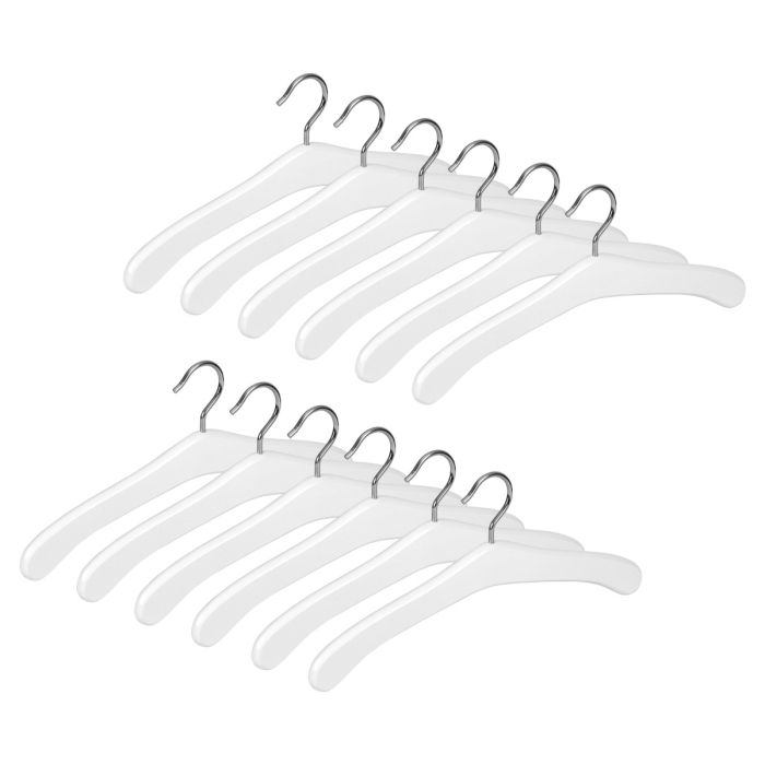 Zeitlose Eleganz und praktische Raffinesse - Der Garderobenbügel 1060 in strahlendem Weiß. Sorgen Sie mit unserem 12er-Set erstklassiger Bügel für eine Garderobe, die Ihre Kleidung verdient.