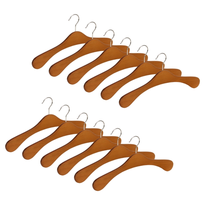 12er Garderobenbügel Set ECO 1112 Premium kirsche n ✓ 12er Set ✓ aus Buchenholz gefertigt ✓ in geschwungener Form ✓ vernickelter 3,4 mm Haken, drehbar ✓ in der Farbe kirsche gebeizt ✓ die Auflagenbreite beträgt 10 mm ✓ die Hakenöffnung beträgt 42 mm ✓ der Garderobenbügel hat eine Breite von 41 cm ✓ geeignet für Mäntel, Jacken, Oberbekleidung