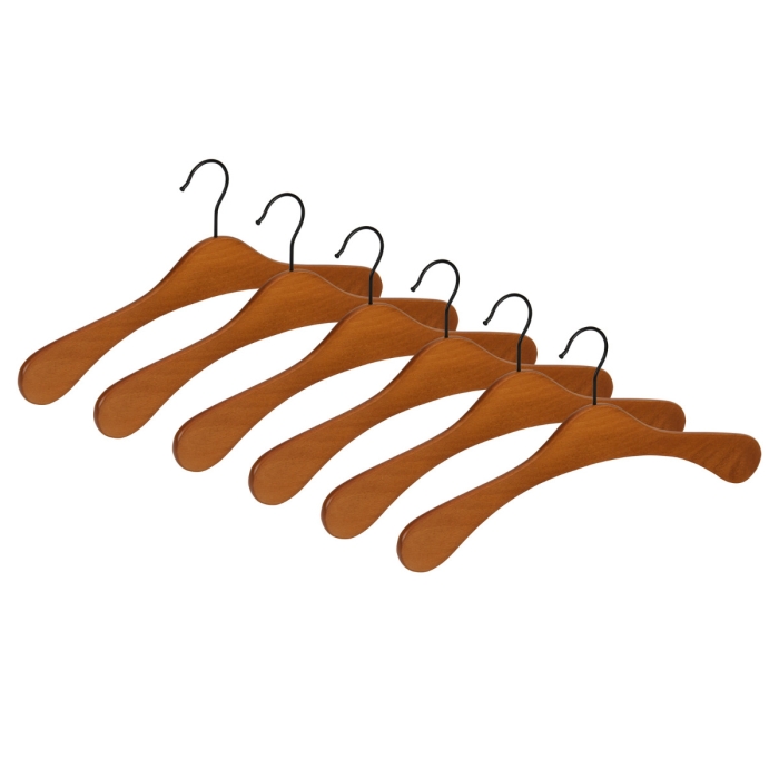 6er Garderobenbügel Set ECO 1112 Premium kirsche s ✓ 6er Set ✓ aus Buchenholz gefertigt ✓ in geschwungener Form ✓ schwarzer 3,4 mm Haken, drehbar ✓ in der Farbe kirsche gebeizt ✓ die Auflagenbreite beträgt 10 mm ✓ die Hakenöffnung beträgt 42 mm ✓ der Garderobenbügel hat eine Breite von 41 cm ✓ geeignet für Mäntel, Jacken, Oberbekleidung