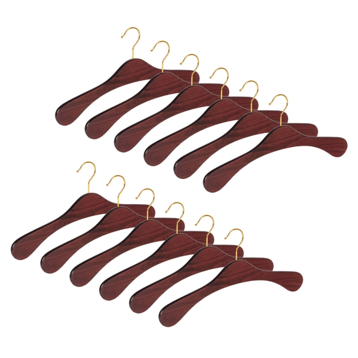 Der Garderobenbügel 1112 in Mahagoni-Optik ist eine perfekte Kombination aus zeitlosem Design und erstklassiger Funktionalität. Organisieren Sie Ihre Garderobe mühelos mit unserem 12er-Set dieser hochwertigen Bügel.
