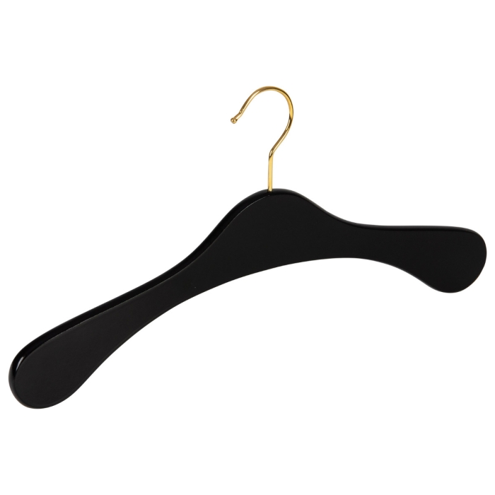 Garderobenbügel 1112 schwarz m ✓ aus Buchenholz gefertigt ✓ in geschwungener Form ✓ vermessingter 3,4 mm Haken, drehbar ✓ die Auflagenbreite beträgt 10 mm ✓ die Hakenöffnung beträgt 42 mm ✓ in der Farbe schwarz hochglänzend lackiert ✓ der Garderobenbügel hat eine Breite von 41 cm ✓ geeignet für Mäntel, Jacken, Oberbekleidung