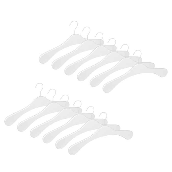 12er Garderobenbügel Set ECO 1112 Premium weiß ✓ 12er Set ✓ aus Buchenholz gefertigt ✓ in geschwungener Form ✓ drehbarer 3,4 mm Haken in weiss ✓ die Auflagenbreite beträgt 10 mm ✓ die Hakenöffnung beträgt 42 mm ✓ in der Farbe weiß hochglänzend lackiert ✓ der Garderobenbügel hat eine Breite von 41 cm ✓ geeignet für Mäntel, Jacken, Oberbekleidung