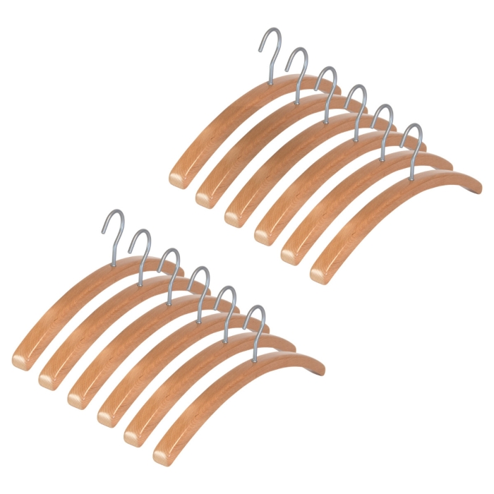 12er Garderobenbügel Set 501 Premium natur sl ✓ 12er Set ✓ aus Buchenholz gefertigt ✓ 6 mm Haken, silber matt lackiert ✓ Höhe des Haken: 9,3cm ✓ die Hakenöffnung beträgt 48 mm ✓ die Auflagenbreite beträgt 30 mm ✓ Garderobenbügel in der Farbe buche natur lackiert ✓ die Gesamthöhe des Bügel beträgt 18,5 cm ✓ der Garderobenbügel hat eine Breite von 45 cm ✓ rechteckiges Profil mit abgerundeten Kanten ✓ geeignet für Mäntel, Jacken, Oberbekleidung