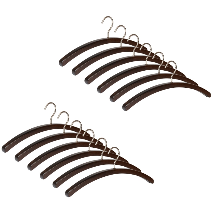 12er Garderobenbügel Set 501 Premium nuss n ✓ 12er Set ✓ aus Buchenholz gefertigt ✓ vernickelter Haken, drehbar ✓ in der Farbe nuss lackiert ✓ die Auflagenbreite beträgt 30 mm ✓ die Hakenöffnung beträgt 48 mm ✓ die Gesamthöhe des Bügel beträgt 18 cm ✓ der Garderobenbügel hat eine Breite von 45 cm ✓ rechteckiges Profil mit abgerundeten Kanten ✓ geeignet für Mäntel, Jacken, Oberbekleidung ✓ lieferbar in sechs verschiedenen Farben