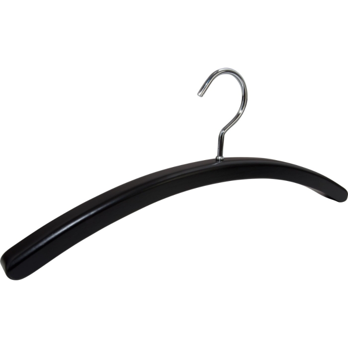 Garderobenbügel 501 Premium schwarz n ✓ aus Buchenholz gefertigt ✓ 6 mm vernickelter Haken ✓ Höhe des Haken: 9,3 cm ✓ die Hakenöffnung beträgt 48 mm ✓ die Auflagenbreite beträgt 30 mm ✓ Garderobenbügel in der Farbe schwarz lackiert ✓ die Gesamthöhe des Bügel beträgt 18,5 cm ✓ der Garderobenbügel hat eine Breite von 45 cm ✓ rechteckiges Profil mit abgerundeten Kanten ✓ geeignet für Mäntel, Jacken, Oberbekleidung