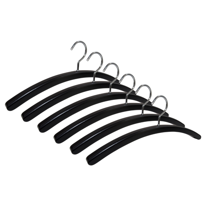 Stilvoll und funktional - Unser Garderobenbügel 501 Premium in eleganter schwarzer Ausführung. Entdecken Sie jetzt unser praktisches 6er-Set dieser hochwertigen Bügel, um Ihre Garderobe stilvoll zu organisieren.