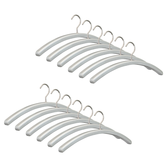 Der Garderobenbügel 501 in stilvollem Silber verleiht Ihrem Kleiderschrank eine Hauch von Eleganz und Funktionalität. Die Eleganz Ihrer Garderobe beginnt mit unserem 12er-Set dieser erstklassigen Bügel, die Ihre Kleidung in Bestform halten.