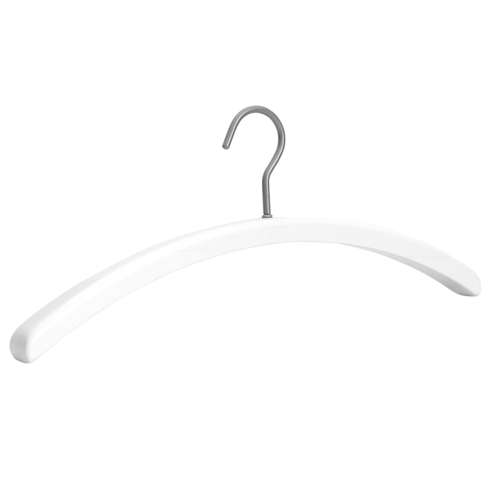 Garderobenbügel 501 weiß sl ✓ aus Buchenholz gefertigt ✓ 6 mm Haken, silber matt lackiert ✓ die Auflagenbreite beträgt 30 mm ✓ die Hakenöffnung beträgt 48 mm ✓ Garderobenbügel in der Farbe weiss lackiert ✓ die Gesamthöhe des Bügel beträgt 18 cm ✓ der Garderobenbügel hat eine Breite von 45 cm ✓ rechteckiges Profil mit abgerundeten Kanten ✓ geeignet für Mäntel, Jacken, Oberbekleidung