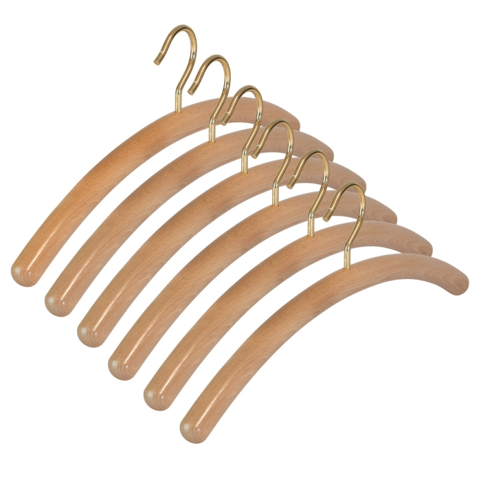 6er Garderobenbügel Set 502 Premium natur m ✓ 6er Set ✓ aus Buchenholz gefertigt ✓ vermessingter Haken, drehbar ✓ Höhe des Haken: 8,5 cm ✓ die Hakenöffnung beträgt 43 mm ✓ in der Farbe buche natur lackiert ✓ die Auflagenbreite beträgt 26 mm ✓ der Garderobenbügel hat eine Breite von 45 cm ✓ die Gesamthöhe des Bügel beträgt 17,5 cm ✓ geeignet für Mäntel, Jacken, Oberbekleidung