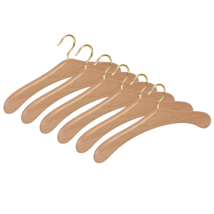 6er Garderobenbügel Set 506 Premium natur m ✓ 6er Set ✓ aus Buchenholz gefertigt ✓ vermessingter 6 mm Haken, drehbar ✓ in der Farbe buche natur lackiert ✓ die Auflagenbreite beträgt 18 mm ✓ die Hakenöffnung beträgt 42 mm ✓ der Garderobenbügel hat eine Breite von 45 cm ✓ ovale und flache Form, abgerundete Enden ✓ geeignet für Mäntel, Jacken, Oberbekleidung ✓ die Gesamthöhe des Bügels beträgt 20 cm