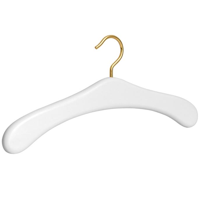 Garderobenbügel 506 weiss m ✓ aus Buchenholz gefertigt ✓ vermessingter 6 mm Haken, drehbar ✓ in der Farbe weiß lackiert ✓ die Auflagenbreite beträgt 18 mm ✓ die Hakenöffnung beträgt 42 mm ✓ der Garderobenbügel hat eine Breite von 45 cm ✓ ovale und flache Form, abgerundete Enden ✓ geeignet für Mäntel, Jacken, Oberbekleidung ✓ die Gesamthöhe des Bügels beträgt 20 cm