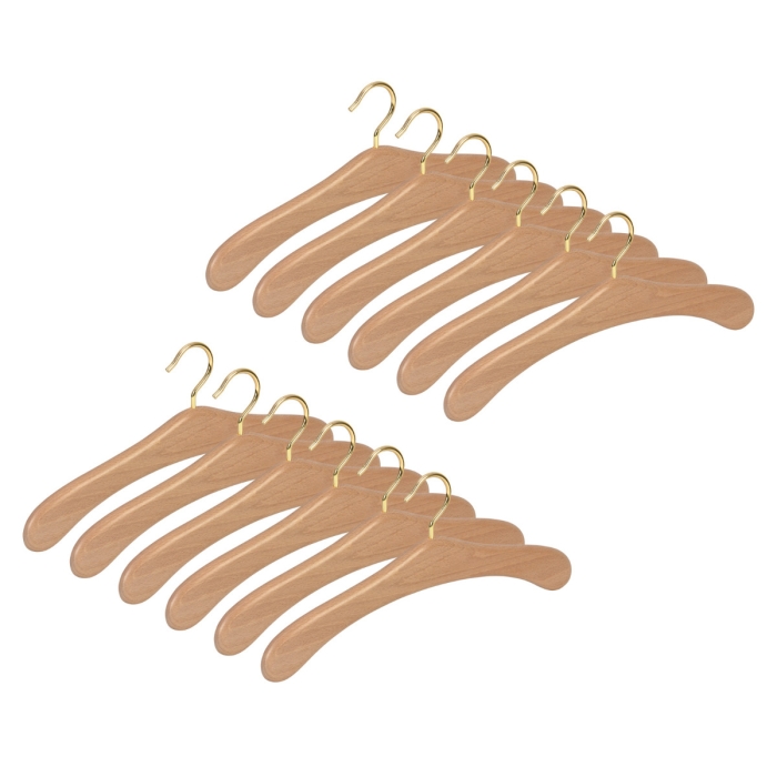 12er Garderobenbügel Set 506 Premium natur m ✓ 12er Set ✓ aus Buchenholz gefertigt ✓ vermessingter 6 mm Haken, drehbar ✓ in der Farbe buche natur lackiert ✓ die Auflagenbreite beträgt 18 mm ✓ die Hakenöffnung beträgt 42 mm ✓ der Garderobenbügel hat eine Breite von 45 cm ✓ ovale und flache Form, abgerundete Enden ✓ geeignet für Mäntel, Jacken, Oberbekleidung ✓ die Gesamthöhe des Bügels beträgt 20 cm