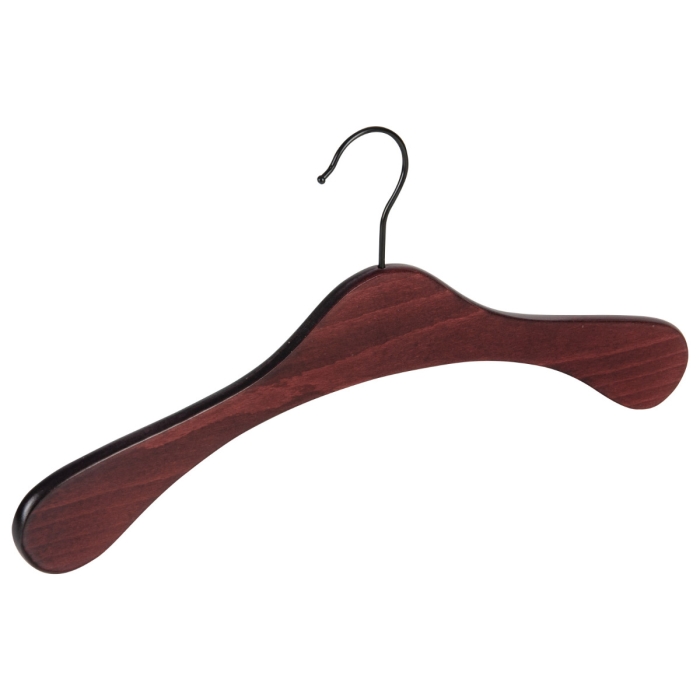 Garderobenbügel 1112 mahagoni s ✓ aus Buchenholz gefertigt ✓ in geschwungener Form ✓ schwarzer 3,4 mm Haken, drehbar ✓ in der Farbe mahagoni gebeizt ✓ die Auflagenbreite beträgt 10 mm ✓ die Hakenöffnung beträgt 42 mm ✓ der Garderobenbügel hat eine Breite von 41 cm ✓ geeignet für Mäntel, Jacken, Oberbekleidung