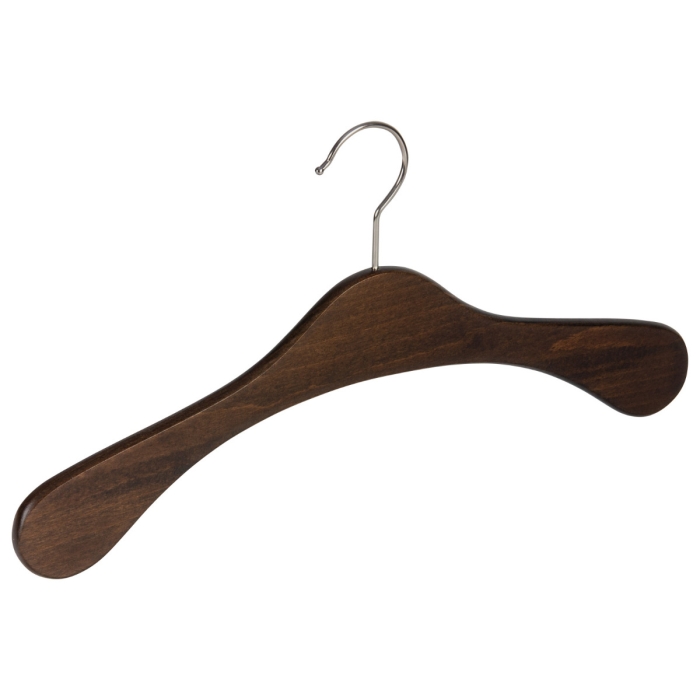 Garderobenbügel 1112 nussbaum n ✓ aus Buchenholz gefertigt ✓ in geschwungener Form ✓ vernickelter 3,4 mm Haken, drehbar ✓ in der Farbe nussbaum gebeizt ✓ die Auflagenbreite beträgt 10 mm ✓ die Hakenöffnung beträgt 42 mm ✓ der Garderobenbügel hat eine Breite von 41 cm ✓ geeignet für Mäntel, Jacken, Oberbekleidung
