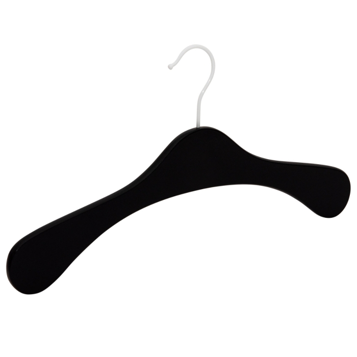 Garderobenbügel 1112 schwarz w ✓ aus Buchenholz gefertigt ✓ in geschwungener Form ✓ 3,4 mm Haken, drehbar in Farbe weiss ✓ die Auflagenbreite beträgt 10 mm ✓ die Hakenöffnung beträgt 42 mm ✓ in der Farbe schwarz hochglänzend lackiert ✓ der Garderobenbügel hat eine Breite von 41 cm ✓ geeignet für Mäntel, Jacken, Oberbekleidung