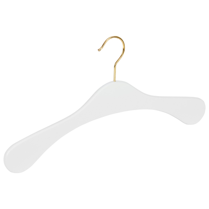 Garderobenbügel 1112 weiß m ✓ aus Buchenholz gefertigt ✓ in geschwungener Form ✓ vermessingter 3,4 mm Haken, drehbar ✓ die Auflagenbreite beträgt 10 mm ✓ die Hakenöffnung beträgt 42 mm ✓ in der Farbe weiß hochglänzend lackiert ✓ der Garderobenbügel hat eine Breite von 41 cm ✓ geeignet für Mäntel, Jacken, Oberbekleidung