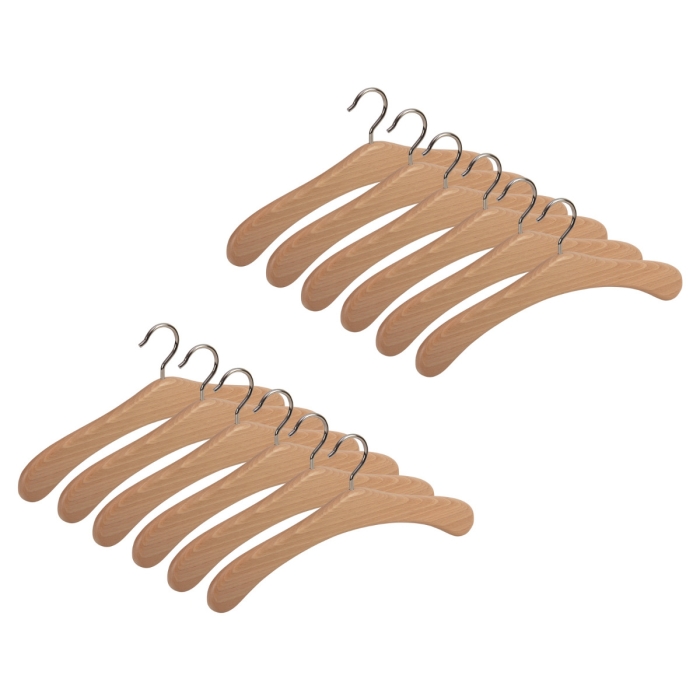 12er Garderobenbügel Set 506 Premium natur n ✓ 12er Set ✓ aus Buchenholz gefertigt ✓ vernickelter 6 mm Haken, drehbar ✓ in der Farbe buche natur lackiert ✓ die Auflagenbreite beträgt 18 mm ✓ die Hakenöffnung beträgt 42 mm ✓ der Garderobenbügel hat eine Breite von 45 cm ✓ ovale und flache Form, abgerundete Enden ✓ geeignet für Mäntel, Jacken, Oberbekleidung ✓ die Gesamthöhe des Bügels beträgt 20 cm