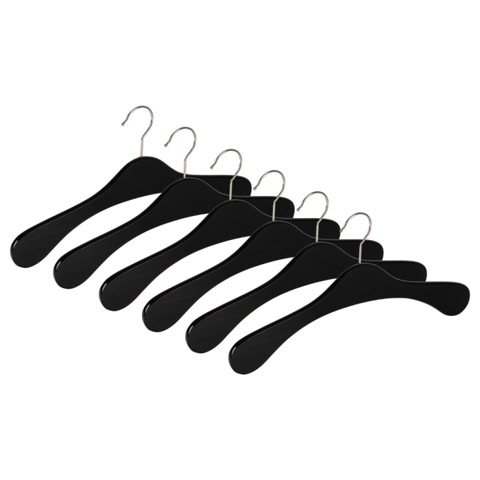 Der Garderobenbügel ECO 1112 in glänzendem Schwarz ist eine stilvolle Ergänzung für Ihren Kleiderschrank. Mit diesem 6er-Set hochwertiger Bügel organisieren Sie Ihre Garderobe spielend einfach.
