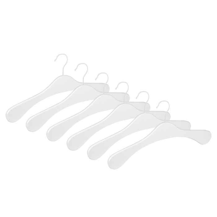 6er Garderobenbügel Set ECO 1112 Premium weiß ✓ 6er Set ✓ aus Buchenholz gefertigt ✓ in geschwungener Form ✓ drehbarer 3,4 mm Haken in weiss ✓ die Auflagenbreite beträgt 10 mm ✓ die Hakenöffnung beträgt 42 mm ✓ in der Farbe weiß hochglänzend lackiert ✓ der Garderobenbügel hat eine Breite von 41 cm ✓ geeignet für Mäntel, Jacken, Oberbekleidung