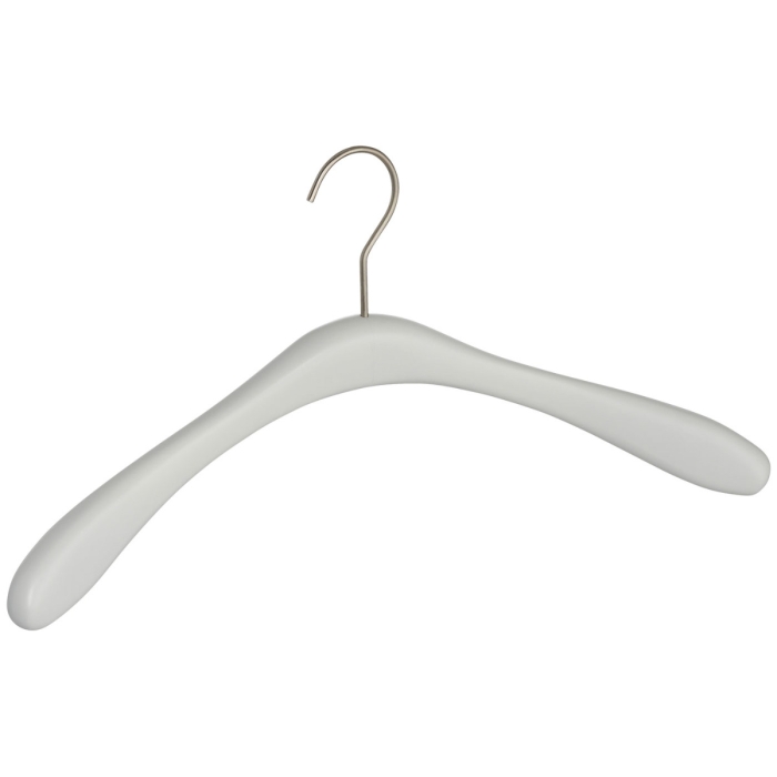 Der Garderobenbügel Typ Sevilla in weiß ist körpergeformt und eignet sich besonders für das Aufhängen von Jacken und Mäntel. Die moderne und wertige Design-Form ist eine echte Alternative zu klassischen Bügelformen.Der Bügel ist aus massivem Buchenholz hergestellt. Maß des Bügels: 43.5 cm