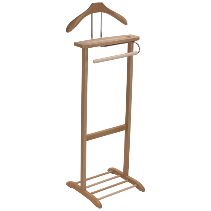 Herrendiener Emil Premium natur ✓ Stummer Diener aus Buchenholz ✓ Höhe 114 cm, Breite 44 cm, Tiefe 36,5 cm ✓ mit extra Hosenstange, Metallteile verchromt ✓ Herrendiener in der Farbe natur lackiert ✓ mit Ablage für Accessoires in 10,5 cm x 42 cm ✓ inkl. Schrauben und Werkzeug zur Montage ✓ sicherer Stand durch breiten und stabilen Fuß ✓ mit Schulterbügel in 44 cm, Auflagebreite von 50 mm