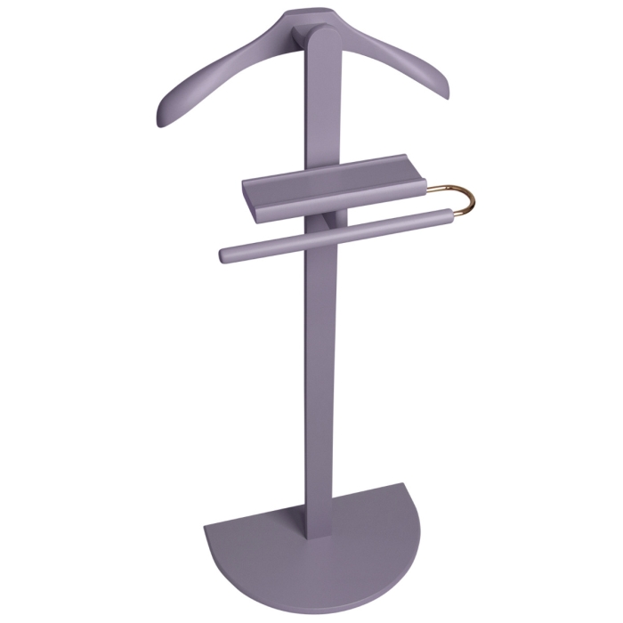 Herrendiener Henri Premium 2099 C ✓ Stummer Diener aus Buchenholz ✓ mit Ablage für Accessoires 9 cm x 24 cm ✓ Höhe 104 cm, Breite 44 cm, Tiefe 26 cm ✓ mit Hosenstange, Metallteile verchromt ✓ Herrendiener in der Farbe flieder lackiert ✓ Schulterbügel in 44 cm, Auflagebreite von 50 mm ✓ inkl. Schrauben und Werkzeug zur Montage ✓ sicherer Stand durch breiten und stabilen Fuß