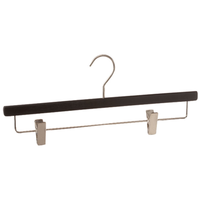 Hosenbügel ECO 5079nk schwarz ✓ Haken 4mm silber glänzend ✓ in weiß oder schwarz lackiert erhältlich ✓ aus Massivholz gefertigt, schwarz lackiert ✓ erhältlich in einer Bügelbreite von 40 cm ✓ die zwei Clips sind flexibel verschiebbar ✓ mit Klammernsteg glänzend und zwei Clipsen ✓ der Hosenbügel hat eine Auflagebreite von 12 mm