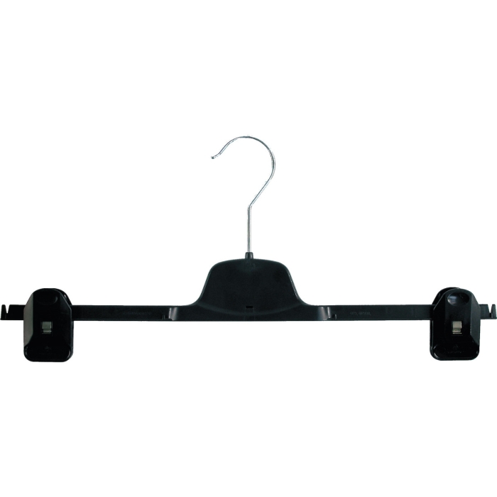 Hosenbügel RKA 35 schwarz ✓ Kunststoffbügel in schwarz ✓ Hosen/Rockbügel aus Kunststoff ✓ der 3,4 mm Haken ist drehbar ✓ mit 2 Klammern, flexibel verschiebbar ✓ erhältlich in einer Breite von 35 cm