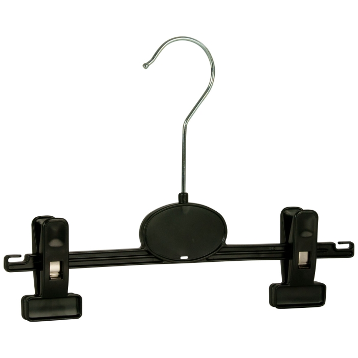 Hosenbügel RKT 25 schwarz ✓ Kunststoffbügel in schwarz ✓ Haken vernickelt und drehbar ✓ Hosen/Rockbügel aus Kunststoff ✓ mit 2 Klammern, flexibel verschiebbar ✓ erhältlich in einer Breite von 25 cm