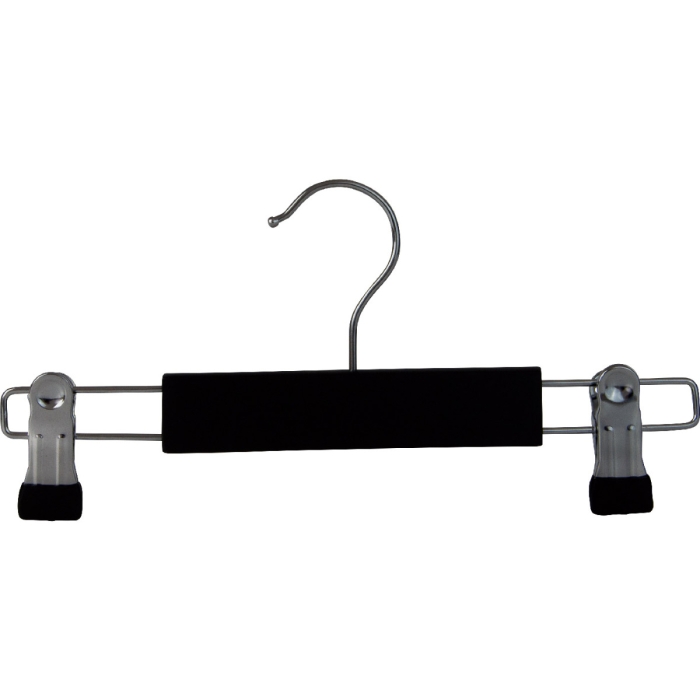 Hosenbügel C 1618 S ✓ vernickelter Haken, drehbar ✓ mit vernickelten Metallteilen ✓ in schwarz lackiert erhältlich ✓ Hosen- und Rockhalter aus Lotusholz ✓ erhältlich in einer Breite von 26 cm ✓ Hosenbügel mit seitlichen Klammern ✓ Clipsteg in Holz eingefasst und 2 Klammern