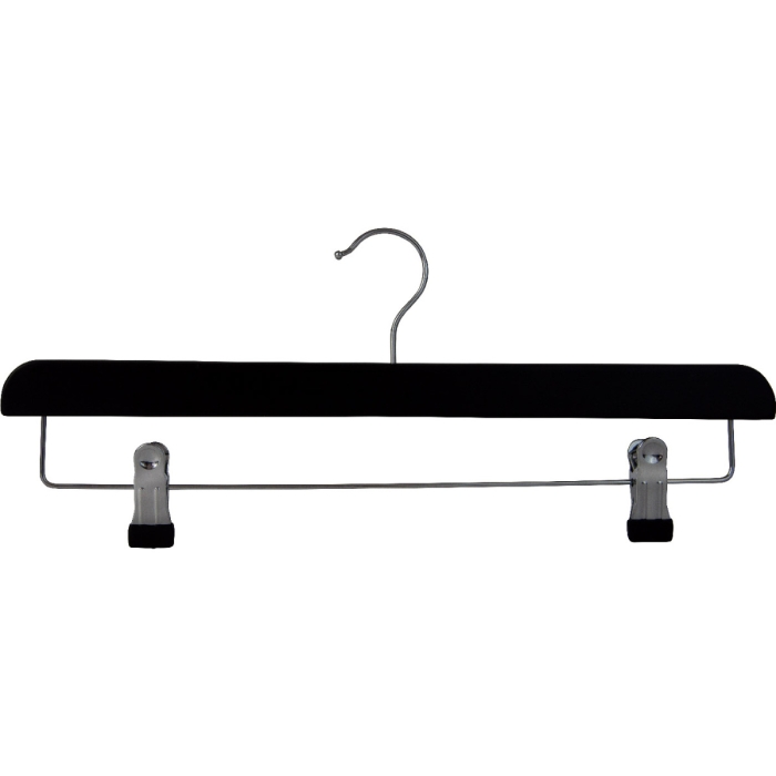 Hosenbügel C 1908 S ✓ vernickelter Haken, drehbar ✓ mit vernickelten Metallteilen ✓ Hosenbügel mit Klammersteg ✓ die Auflagebreite beträgt 12 mm ✓ erhältlich in einer Breite von 40 cm ✓ Hosen- und Rockhalter aus Lotusholz ✓ in weiß oder schwarz lackiert erhältlich ✓ Clipsteg in Holz eingefasst und 2 Klammern