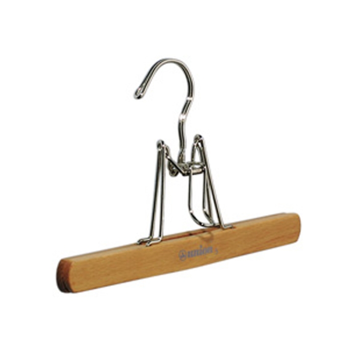 Unverzichtbar in Ihrem Kleiderschrank ist der Hosenhalter pieperconcept Union 3 in massiver Buche, natur gedämpft poliert, mit silberfarbigem Gestell ausgestattet. Die Bügelbreite beträgt 26 cm, Breite der Hölzer 25 mm. Haken silberfarbig glänzend. Geeignet für Hosen und Röcke aller Art. Qualitätsprodukt aus dem Hause Union.