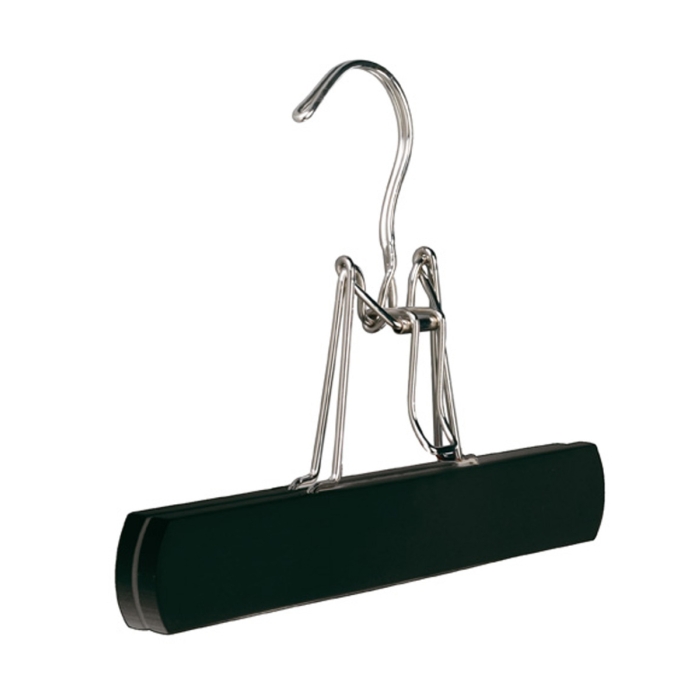 Hosenklemmbügel pieperconcept Union 5 schwarz ✓ Hosenklemmbügel aus Buchenholz ✓ die Hakenöffnung beträgt 46 mm ✓ geeignet für Hosen und Röcke aller Art ✓ die Bügelbreite beträgt in 26 cm ✓ die Höhe der Holzleisten beträgt 40 mm ✓ Haken und Gestell silberfarbig glänzend ✓ Qualitätsprodukt aus dem Hause Union ✓ mit Filzeinlagen zwischen den Klemmleisten ✓ das Gewicht des Kleiderbügels beträgt ca. 190g