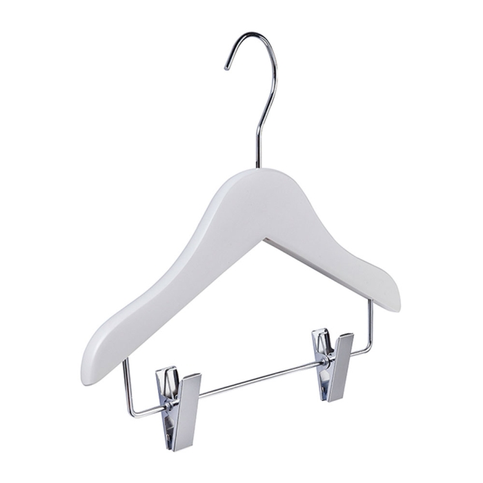 Kinderbügel ECO 7236nk weiß ✓ Massivholz weiss lackiert ✓ 3,4 mm Haken silberfarbig ✓ Haken glänzend verchromt ✓ der Haken ist 360° drehbar ✓ mit Clipsteg, individuell verschiebbar ✓ platzsparender Flachbügel ✓ die Auflagebreite beträgt 13 mm ✓ die Bügelbreite beträgt 28 cm ✓ die Gesamthöhe des Hosenbügels beträgt 28 cm