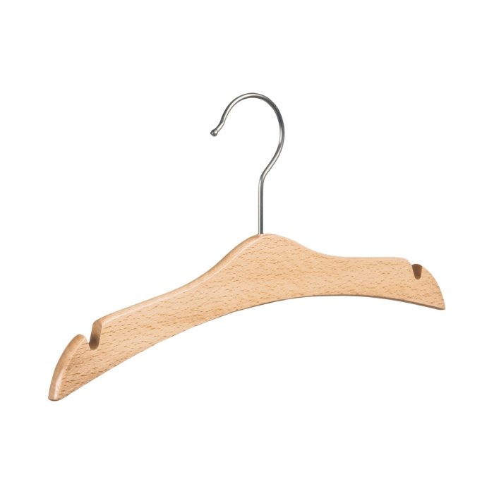 Kleiderbügel 1409 H ✓ Buchenholz natur lackiert ✓ vernickelter Haken, drehbar ✓ die Auflagebreite beträgt 10 mm ✓ mit Rockkerben an den Seiten ✓ Flachbügel in 32 cm Breite
