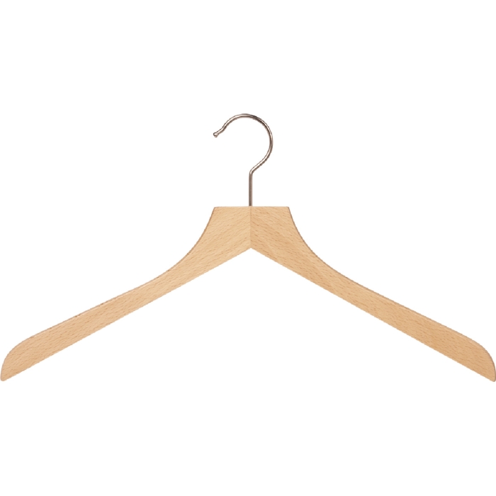 Der Kleiderbügel 149 aus Buchenholz ist ein platzsparender Flachbügel, der durch seine gerade Kopfform und natur lackierte Oberfläche besticht. Der vernickelte, drehbare Haken sorgt für eine bequeme Nutzung.