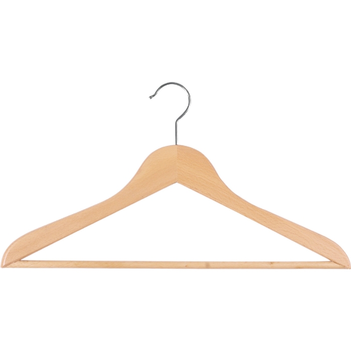 Kleiderbügel 156 ✓ aus Buchenholz ✓ große runde Kopfform ✓ vernickelter Kugelhaken ✓ Flachbügel mit Hosensteg ✓ Farbe buche natur lackiert ✓ erhältlich in der Bügelbreite 38 cm, 41 cm, 44 cm ✓ der Kleiderbügel hat eine Auflagebreite von 13 mm