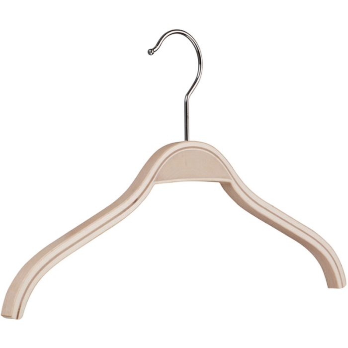 Kleiderbügel 19c Schichtholz ✓ Kleiderbügel aus Schichtholz ✓ buche natur lackiert (Deckfurnier) ✓ die Auflagebreite beträgt 12 mm ✓ ansprechendes Design ✓ sehr leicht und platzsparend ✓ Haken 3,4 mm vernickelt ✓ flache Kleiderbügelform ✓ erhältlich in der Breite 32 cm