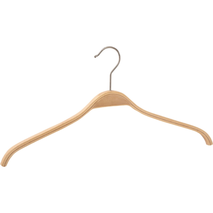 Kleiderbügel 19c Schichtholz ✓ Kleiderbügel aus Schichtholz ✓ buche natur lackiert (Deckfurnier) ✓ die Auflagebreite beträgt 12 mm ✓ ansprechendes Design ✓ sehr leicht und platzsparend ✓ Haken 3,4 mm vernickelt ✓ flache Kleiderbügelform ✓ erhältlich in der Breite 43 cm