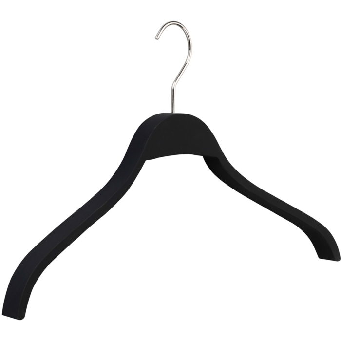 Kleiderbügel 14c Soft Touch ✓ Soft Touch Oberfläche in schwarz ✓ verchromter Kugelhaken, 4mm ✓ ansprechendes Design ✓ sehr leicht und platzsparend ✓ in der Bügelbreite 45 cm erhältlich ✓ der Kleiderbügel hat eine Auflagebreite von 12 mm ✓ rutschhemmend durch die Soft-Touch Beschichtung ✓ samtige und weiche Oberfläche, flache Bügelform
