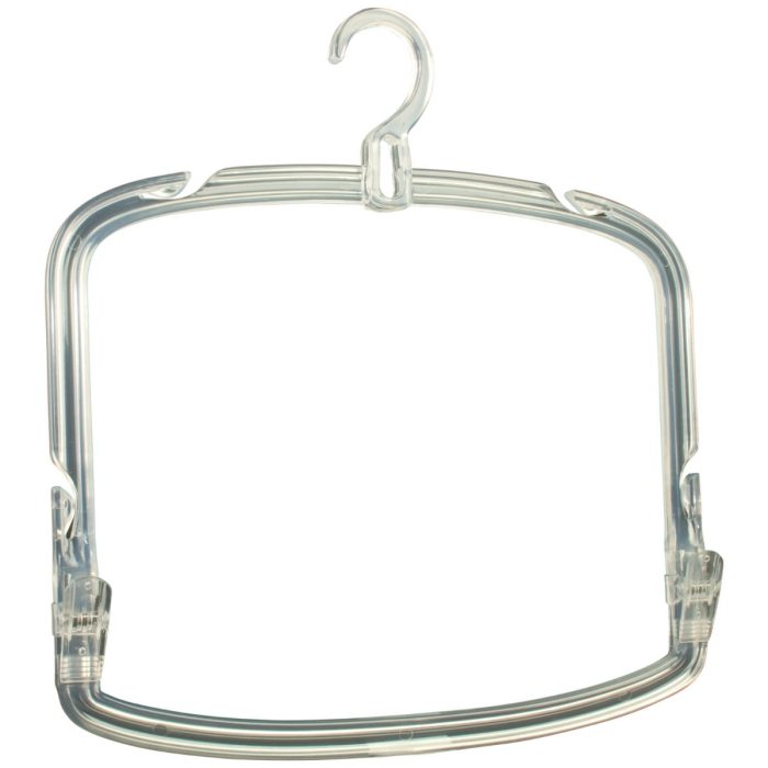 Kleiderbügel 4500 Bikini transparent ✓ Kunststoffbügel transparent ✓ vier Aussparung für Träger ✓ mit zwei Kunststoffclipsen ✓ die Hakenöffnung beträgt 30 mm ✓ das Gewicht beträgt ca. 95 g ✓ Breite 34 cm, Höhe 32 cm inkl. Haken