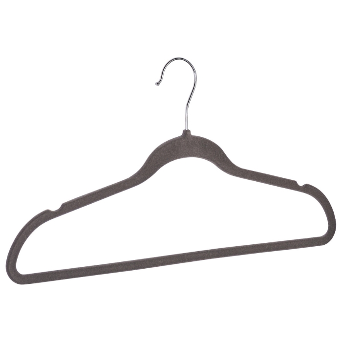 Der Kleiderbügel beflockt in edlem Grau ist die perfekte Wahl, um Ihre Hemden, Blusen und Sakkos stilvoll zu organisieren.