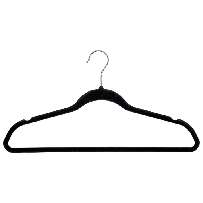 Der Kleiderbügel beflockt in elegantem Schwarz ist die optimale Wahl für die stilvolle Aufbewahrung Ihrer Hemden, Blusen, und Sakkos.