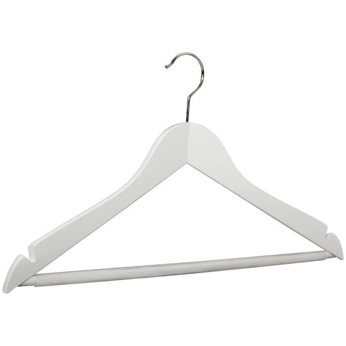 Kleiderbügel Business RE RFS weiß ✓ der Kleiderbügel ist körpergeformt ✓ drehbarer 3,4 mm Haken, vernickelt ✓ ungebrochene Kantenausführung ✓ die Auflagenbreite beträgt 12 mm ✓ die Hakenöffnung beträgt ca. 40 mm ✓ die Kleiderbügelbreite beträgt 45 cm ✓ mit Holzsteg, rutschfest ummantelt ✓ mit Rockeinkerbungen an den Seiten ✓ der Kleiderbügel hat ein Gewicht von ca. 170 g