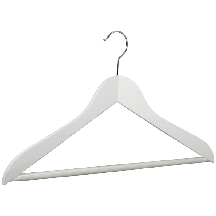 Kleiderbügel Business RFS weiss ✓ der Kleiderbügel ist körpergeformt ✓ drehbarer 3,4 mm Haken, vernickelt ✓ Kombi-Formbügel aus Massivholz ✓ ungebrochene Kantenausführung ✓ die Auflagenbreite beträgt 12 mm ✓ die Hakenöffnung beträgt ca. 40 mm ✓ mit Holzsteg, rutschfest ummantelt ✓ die Kleiderbügelbreite beträgt 45 cm ✓ der Kleiderbügel hat ein Gewicht von ca. 140 g