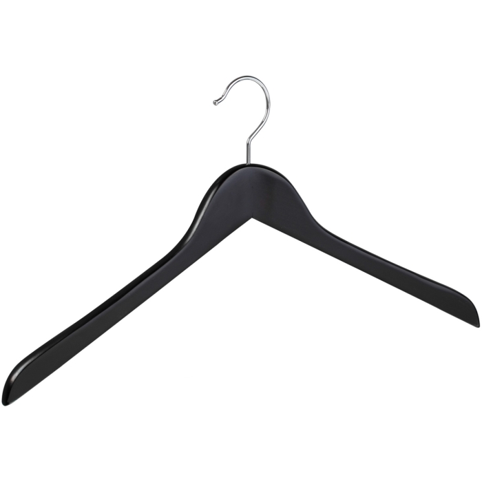 Kleiderbügel C 2123 braun ✓ Lotusholz in dunkelbraun gebeizt ✓ 3,4 mm Kugelhaken, vernickelt ✓ gewinkelte Bügelform, körpergeformt ✓ erhältlich in der Bügelbreite 44 cm ✓ die Auflagebreite beträgt 11 mm ✓ besonders leicht da aus Lotusholz